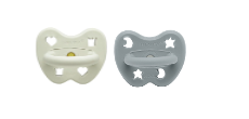 This two-pack of HEVEA® 100% Natural Rubber Pacifiers is perfect for babies and toddlers from 3 to 36 months. HEVEA pacifiers feature a seamless one-piece build that makes them easy to clean and hygienic. The natural rubber teat and face ensure the pacifier is soft to touch and gentle on your baby's face and lips. And the fun cut out shapes on the face ensure your baby’s safety while also having some adorable fun!