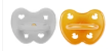 This two-pack of HEVEA® 100% Natural Rubber Pacifiers is perfect for babies and toddlers from 3 to 36 months. HEVEA pacifiers feature a seamless one-piece build that makes them easy to clean and hygienic. The natural rubber teat and face ensure the pacifier is soft to touch and gentle on your baby's face and lips. And the fun cut out shapes on the face ensure your baby’s safety while also having some adorable fun!