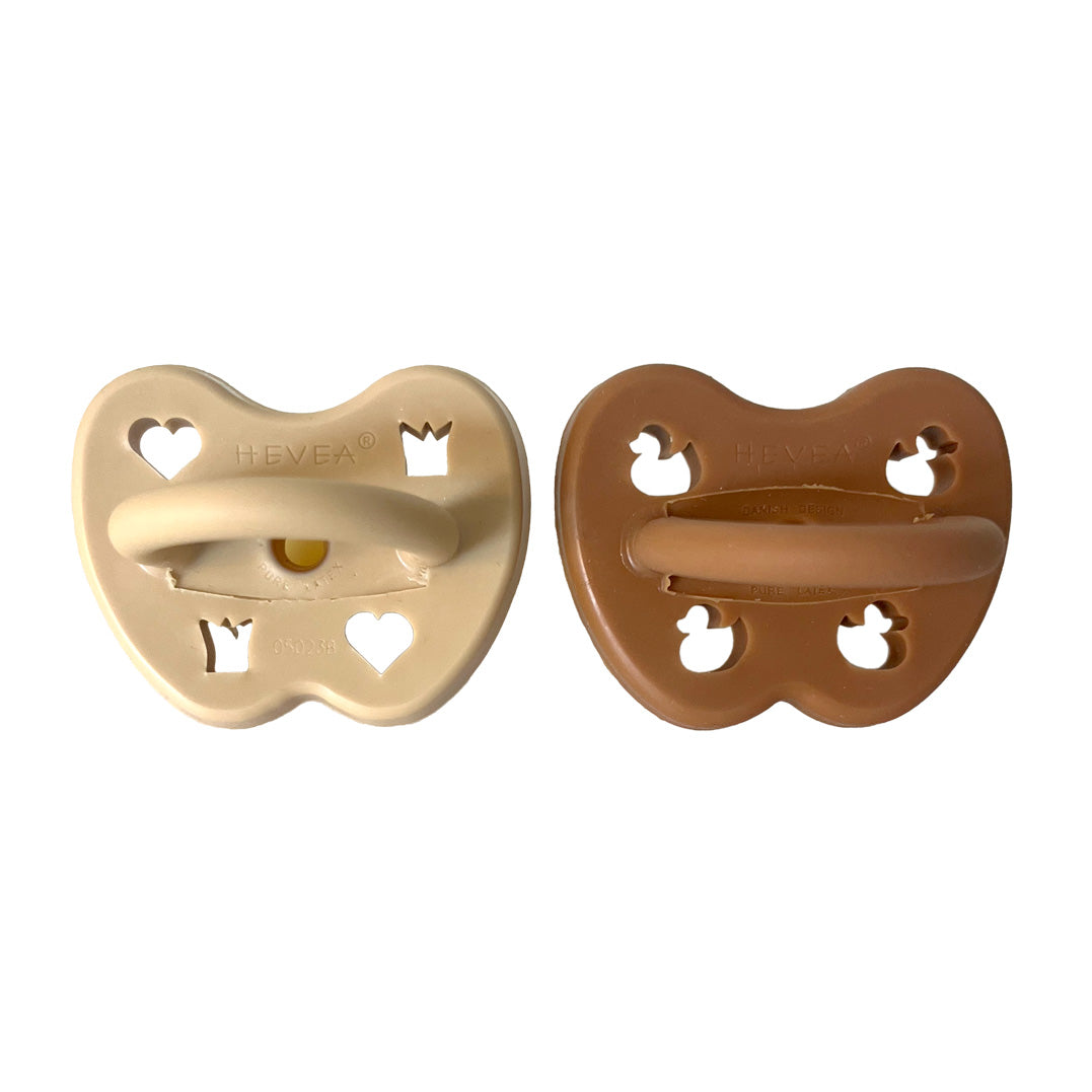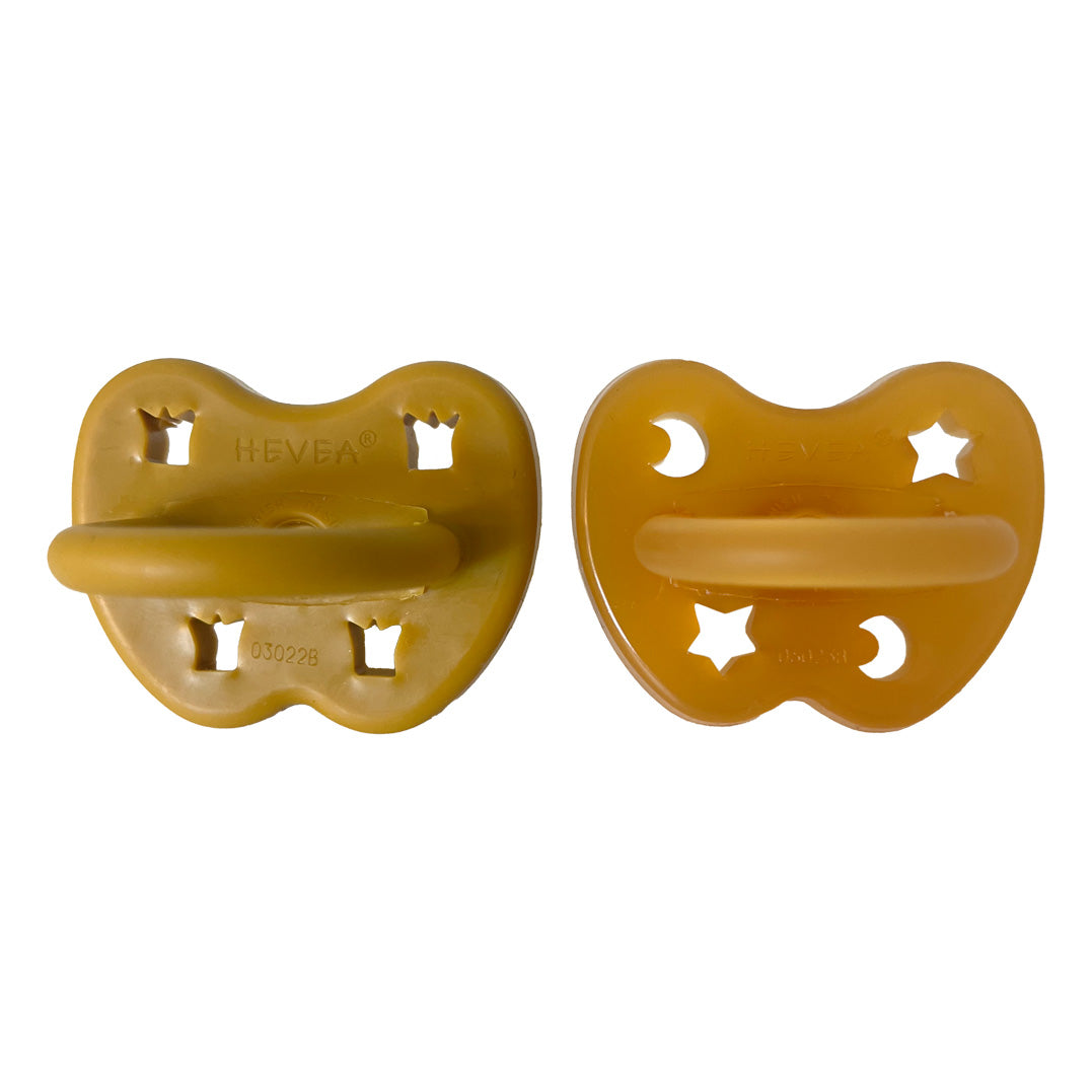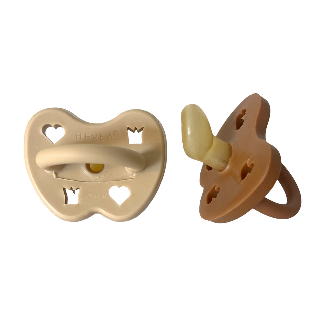 This two-pack of HEVEA® 100% Natural Rubber Pacifiers is perfect for babies and toddlers from 3 to 36 months. HEVEA pacifiers feature a seamless one-piece build that makes them easy to clean and hygienic. The natural rubber teat and face ensure the pacifier is soft to touch and gentle on your baby's face and lips. And the fun cut out shapes on the face ensure your baby’s safety while also having some adorable fun!